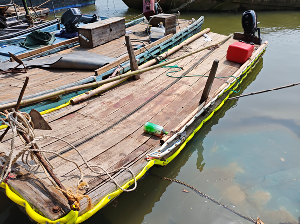 “涉嫌三无船舶3”:该船船体为木质材质,总长约5米;船艉挂有一柴油机,功率未知;船上放置有“长城网”网具。