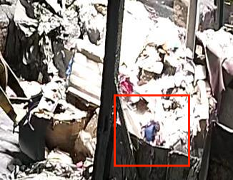 图1-3刘某某被撞倒瞬间 图1-4刘某某掉入碎浆机内