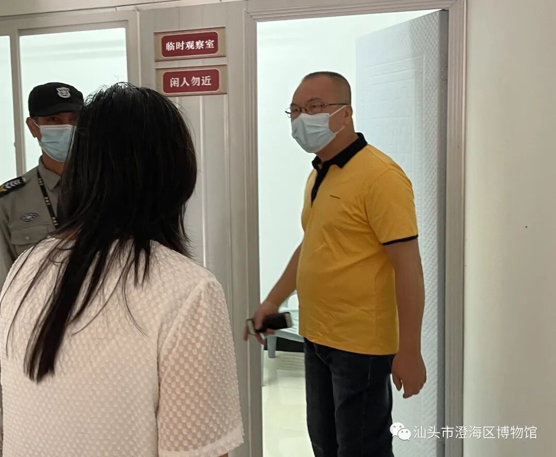 演练中,蔡馆长接到门房体温检测点电话,内容为检测出一名前来参观的游客体温为37.5℃,粤康码显示为黄码。蔡馆长立即通知门房值守人员关闭博物馆大门,谢绝参观,启动博物馆疫情防控应急预案,全馆进入应急状态。