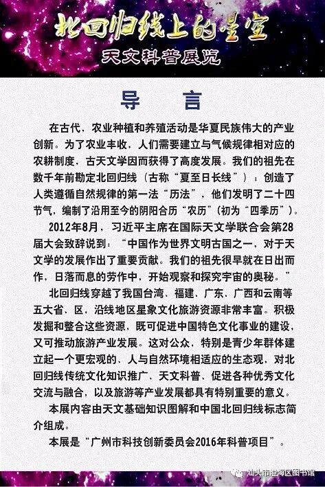 由广东省立中山图书馆主办,区科协、区图书馆协办的“北回归线上的星空”——天文科普图片展12月27日开始在区图书馆三楼多功能展厅展出。欢迎广大读者前往观看!