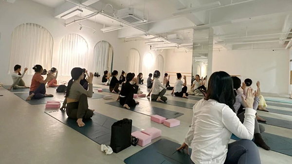 瑜伽课上,在经历一天的工作之后,在轻柔舒缓的音乐声中,感受肌肉的拉伸,感受呼吸的起伏,感受快节奏生活里“慢下来”的松弛,和自己的身体相处,和自己的心灵对话。