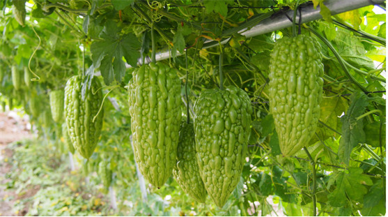 苦瓜原产亚洲热带地区,广泛分布于热带、亚热带和温带地区。传入我国后,在广东、湖南、四川、福建等南方省份栽培最盛。澄海区常年种植苦瓜的面积约1680亩,年产量约1.4万吨。近年来,澄海区依托品牌强农战略,通过大力强化绿色安全蔬菜品牌推介与营销渠道建设,引导龙头企业、合作社、家庭农场、种植大户等经营主体开展品牌创建,2020年,澄海苦瓜入选广东名特优新农产品名录,2023年,澄海苦瓜入选全国名特优新农产品名录,和利农的“吉美2号苦瓜”为粤字号农产品。目前,澄海苦瓜有600多个品种,其中8个通过省审(评)定、2个取得植物新品种权证书。