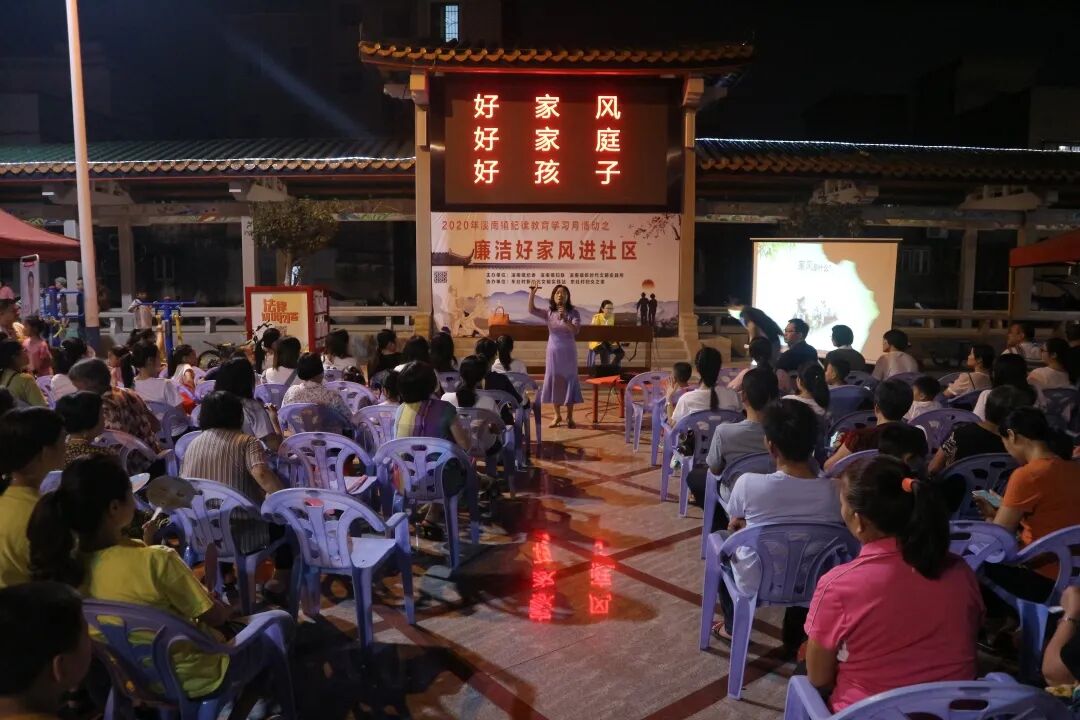 为扎实推进纪律教育学习月活动,2020年9月24日晚,溪南镇纪委、溪南镇妇联和溪南镇新时代文明实践所联合在东社村党建主题公园举办廉洁好家风进社区活动。